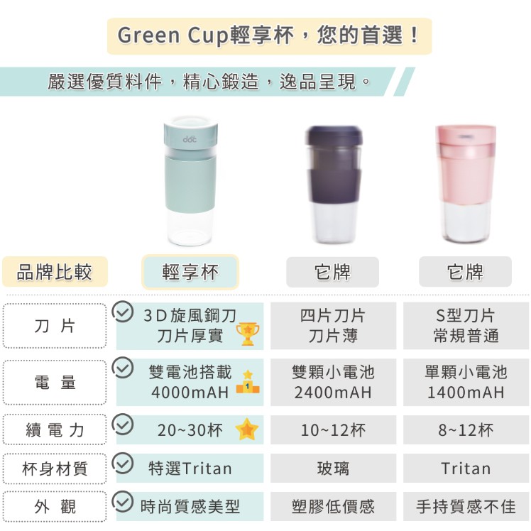 Doc Green 輕享杯 2021奧地利green Cup隨行杯 果汁機團購 時尚質感usb充電果汁機