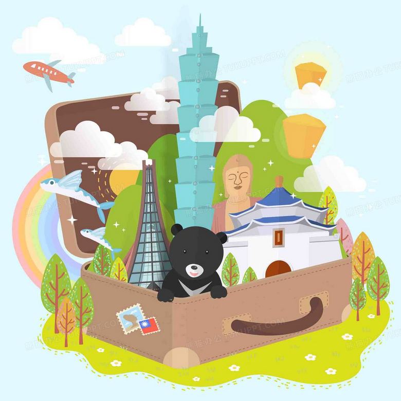 手绘矢量旅游台湾景点地图海报背景背景图片素材免费下载 熊猫办公