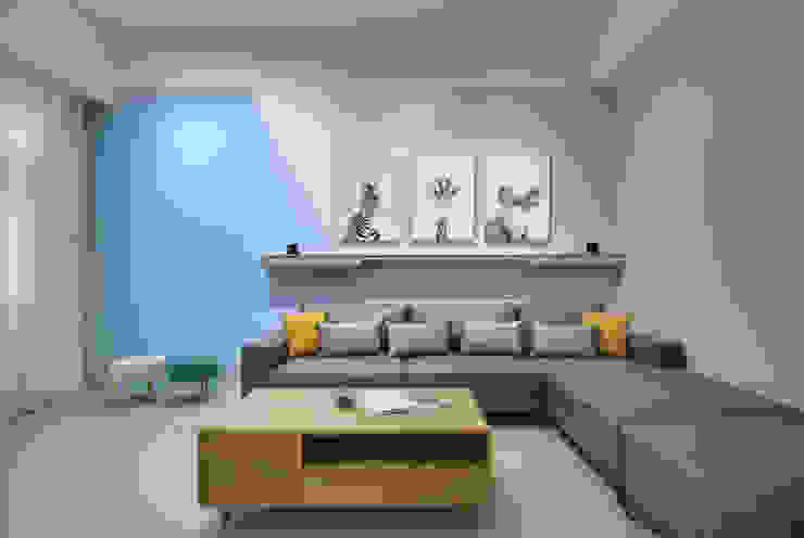 9wood 九木住宅設計系統家具 大門的右手邊牆面作為電視牆 不同寬度的層板和系統櫃階段延伸到大門 不但簡約也具有設計感 客廳 沙發 茶几 北歐 休閒 簡約 玄關 鞋櫃
